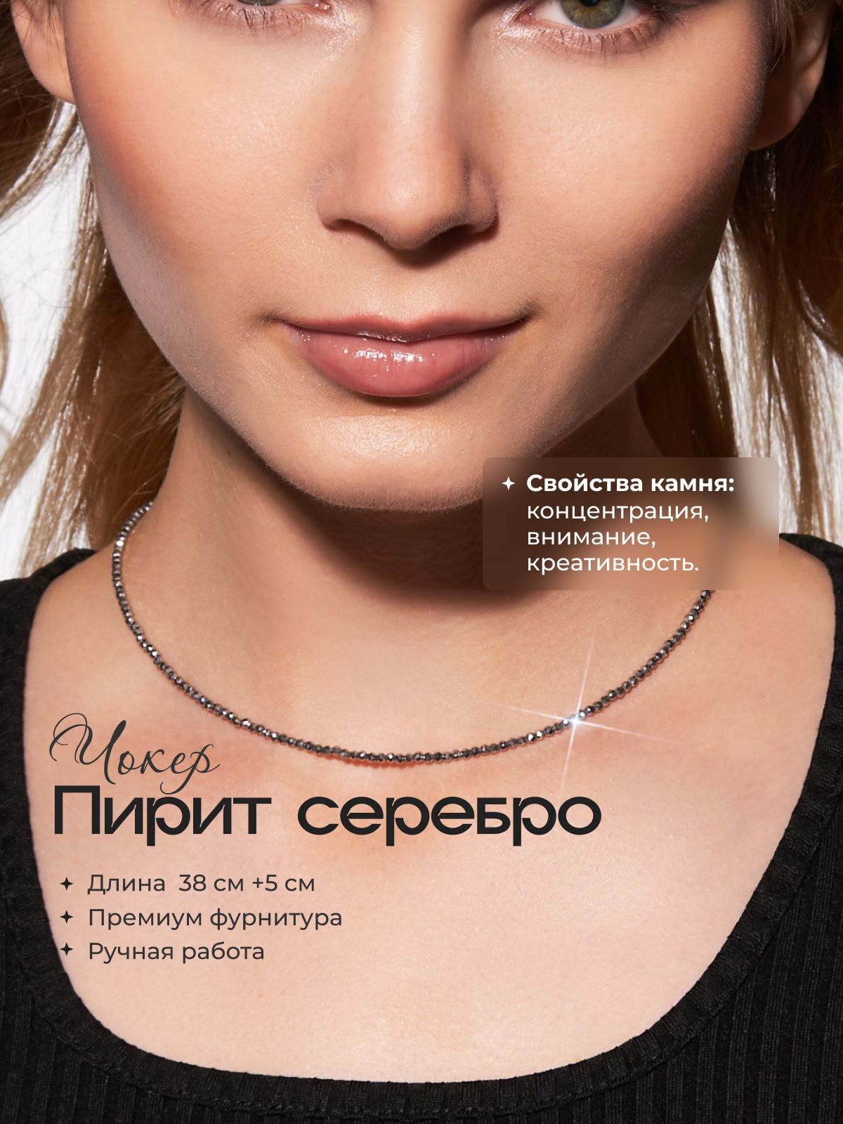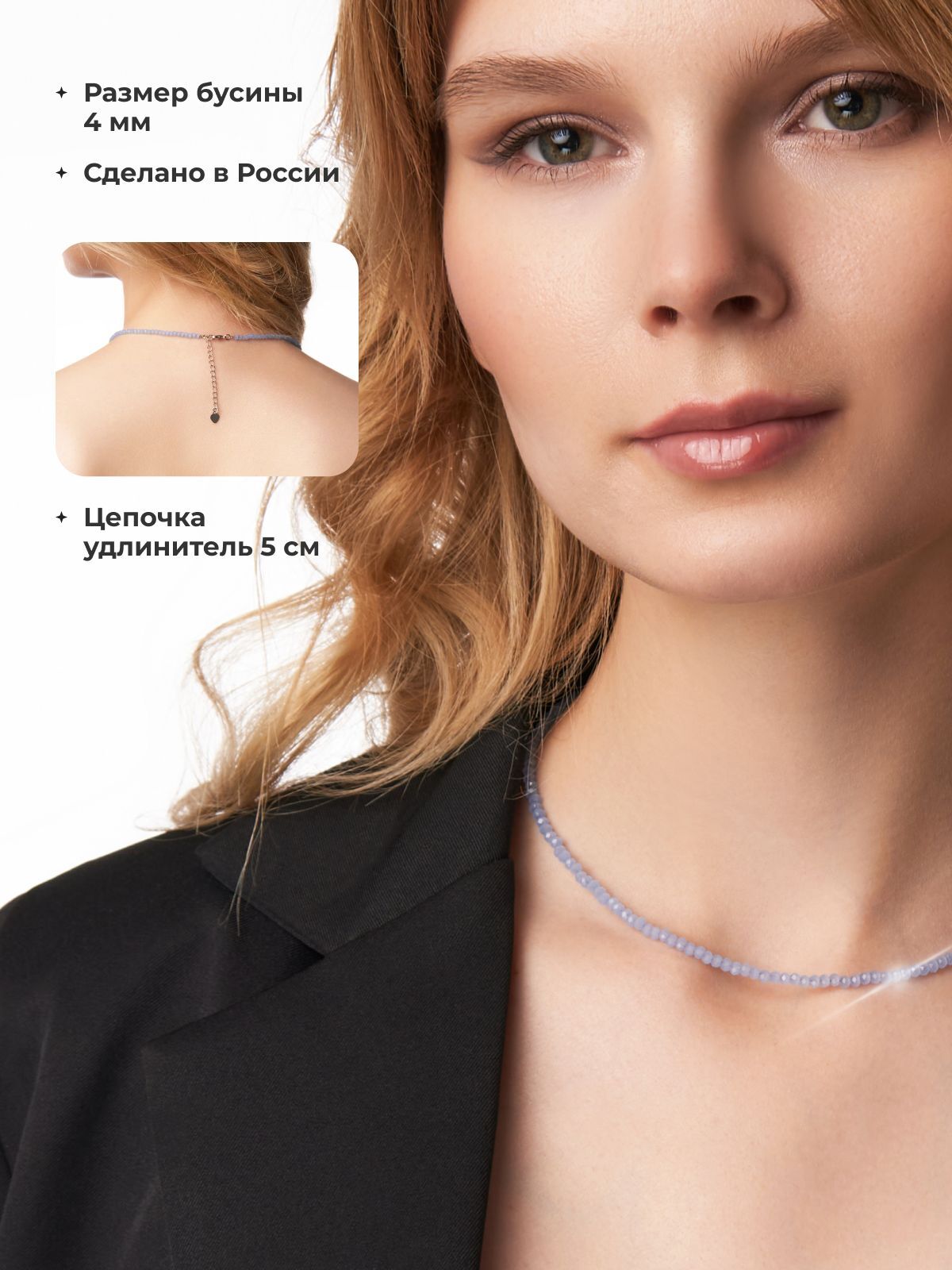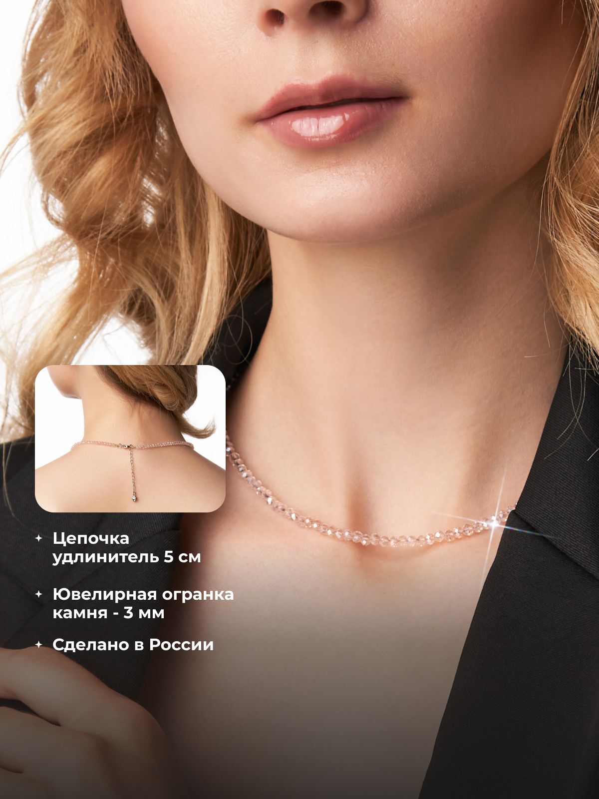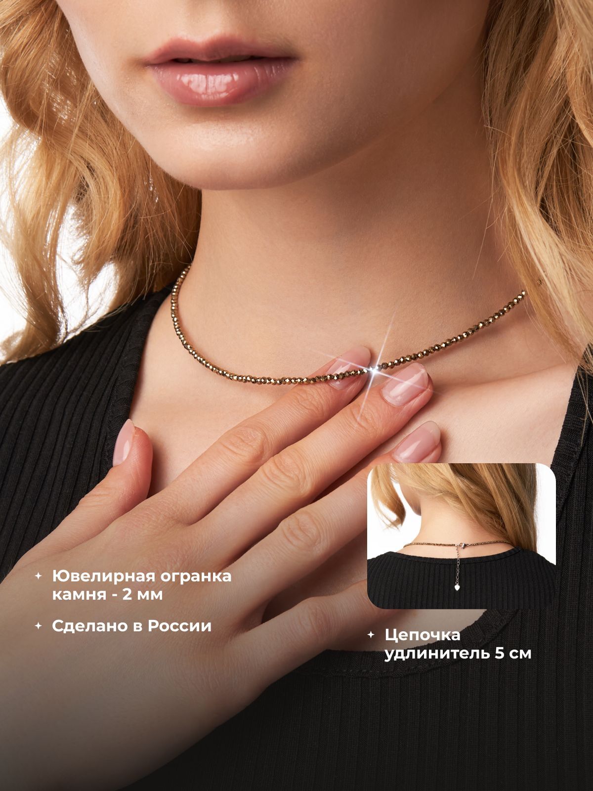 Размер чокера 38 см+8 см цепочка удлинитель. Колье подойдет на больший обхват шеи за счет цепочки-удлинителя.