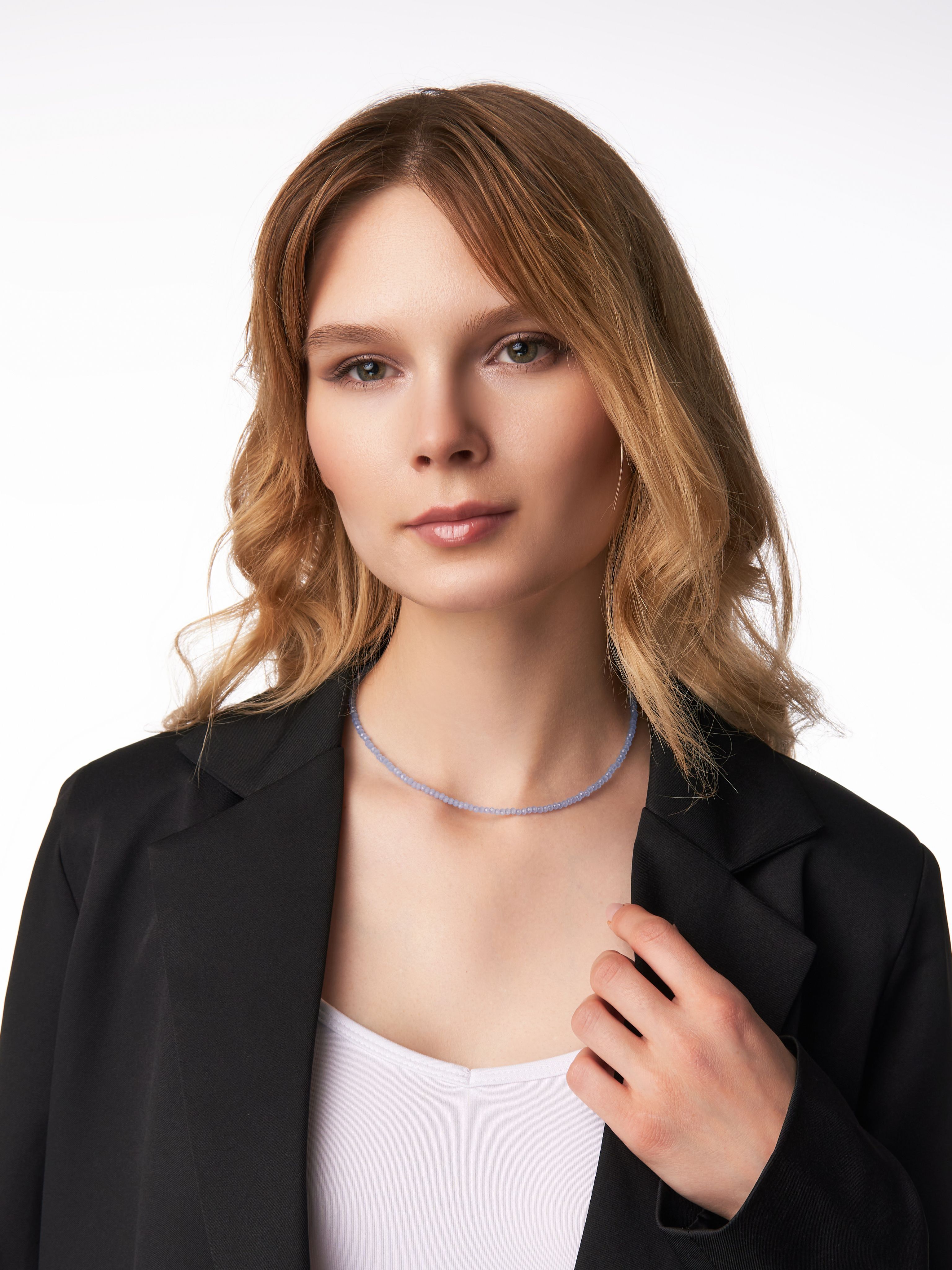 Чокер из натуральных камней голубого агата, сделан для ценителей красоты.