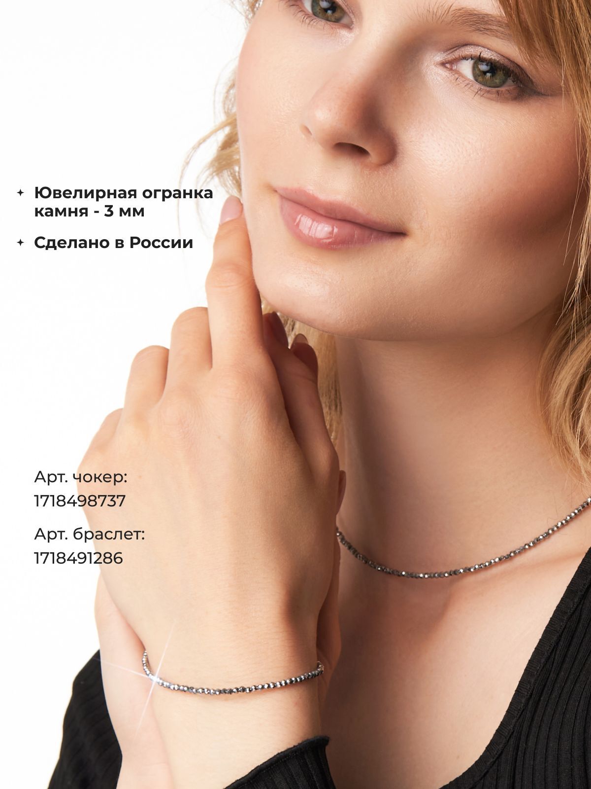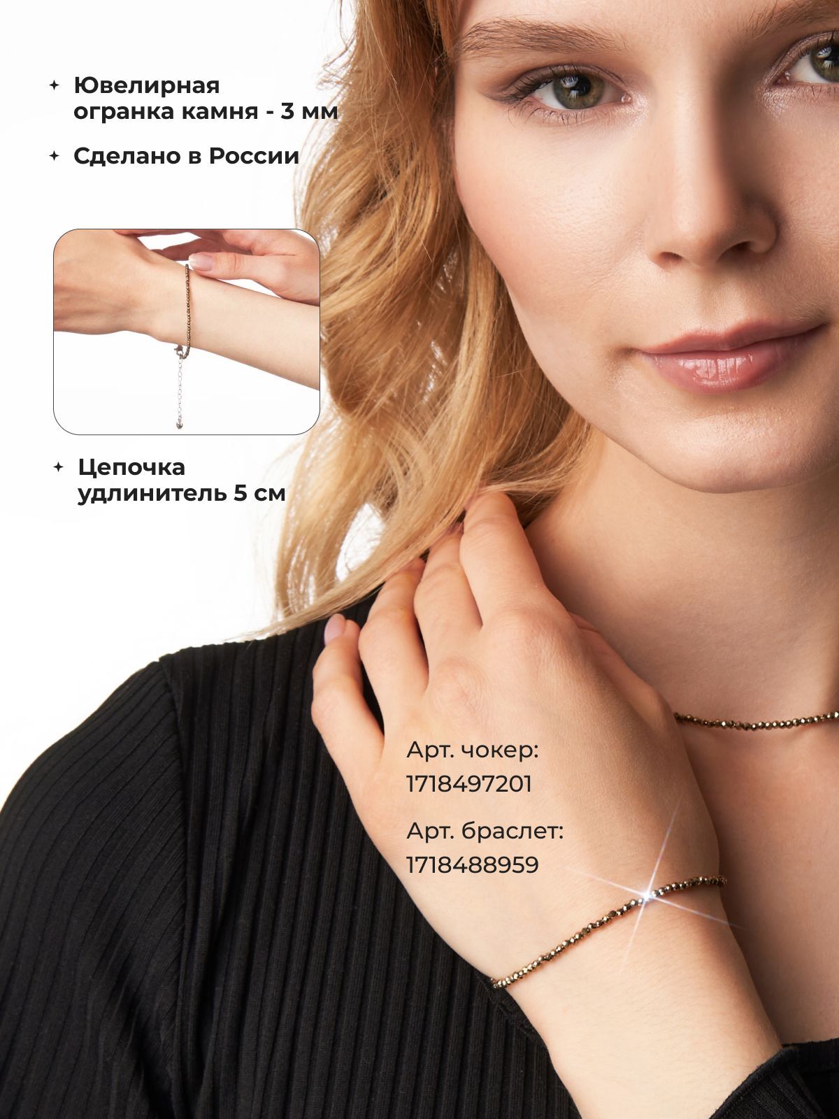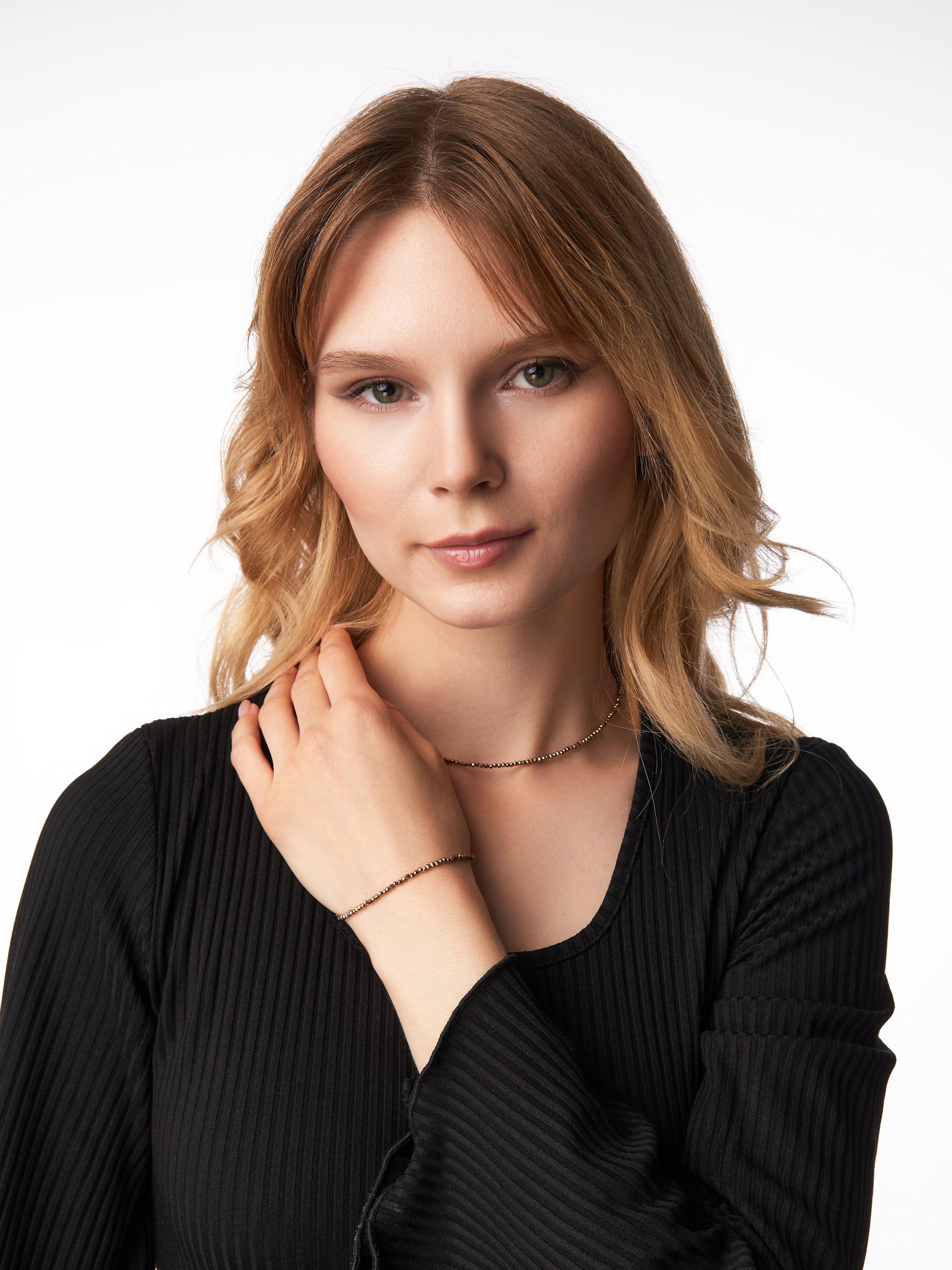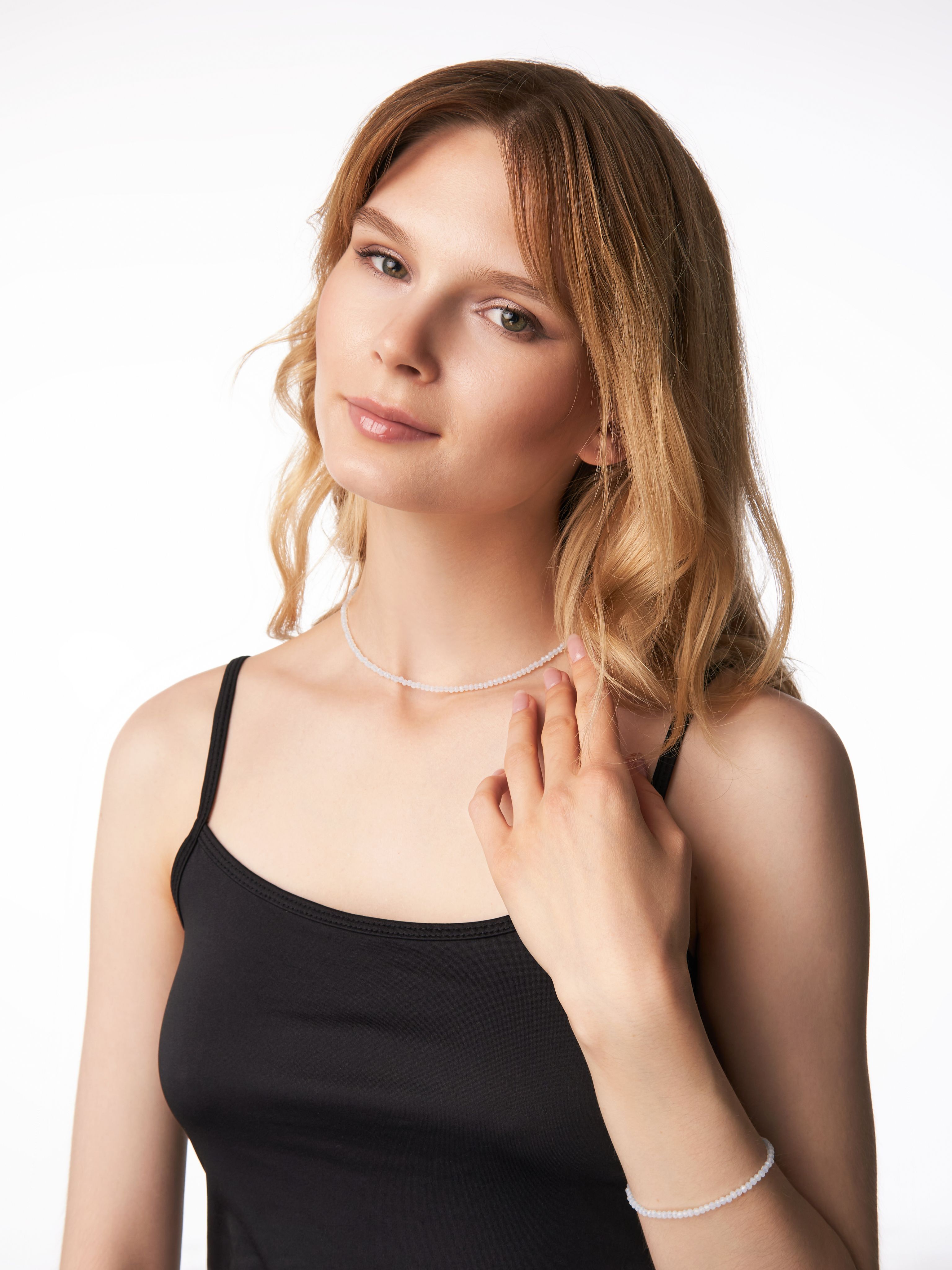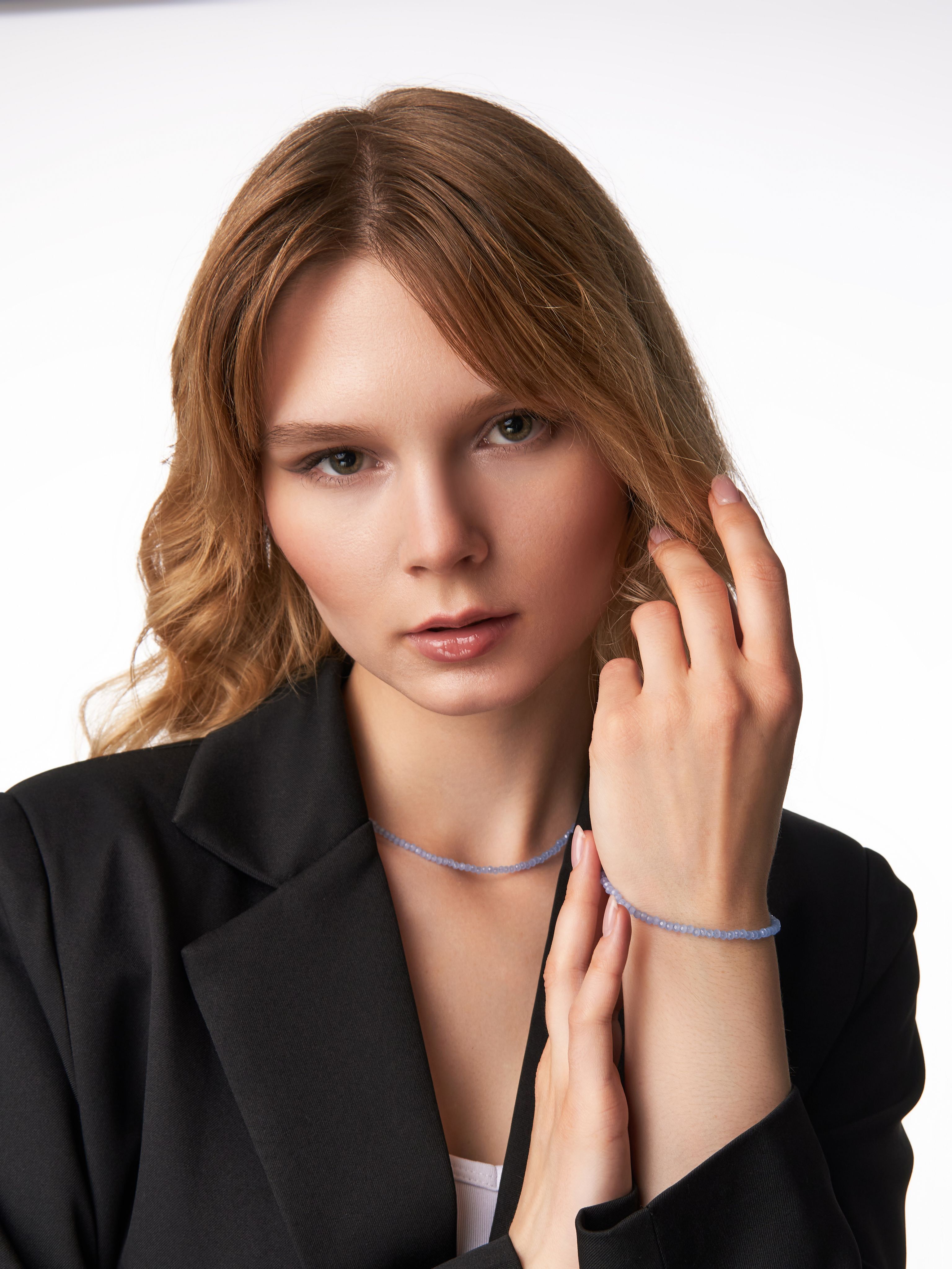 В линейке Shine есть комплект к чокеру - браслет голубого агата (сапфирина). Благодаря современному и утонченному дизайну чокер подойдет девочкам и женщинам любого возраста. Удобная застежка обеспечивает надежное крепление, что делает его практичным в использовании.