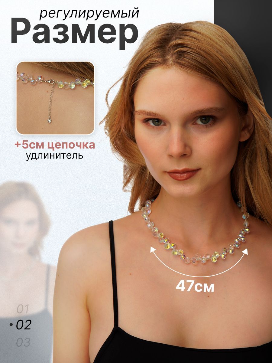 Колье "Чешское стекло" - это уникальное украшение, которое станет настоящим украшением вашего гардероба. Этот чокер изготовлен из хрустального стекла, что придает ему особую красоту и блеск. Он имеет длину 47 см, что делает его идеальным выбором для женщин любого возраста.